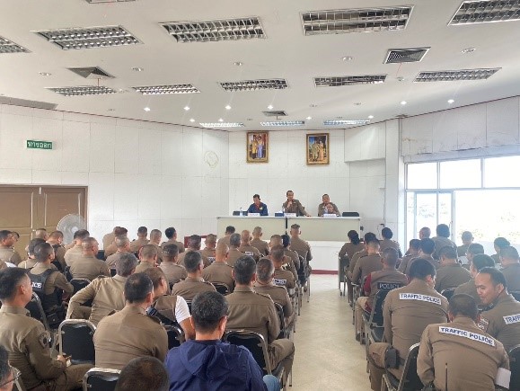 พ.ต.อ.อัครพล รัศมี ผกก.สภ.เมืองศรีสะเกษ จัดอบรมเสริมสร้างคุณธรรม และความโปร่งใส และการต่อต้านการรับสินบน การไม่รับของขวัญของกำนัลหรือประโยชน์อื่นใด จากการปฏิบัติหน้าที่ ประจำปีงบประมาณ พ.ศ. 2568 ให้ข้าราชการตำรวจในสังกัดทราบและถือปฏิบัติ ณ ห้องประชุม ชั้น 4 สภ.เมืองศรีสะเกษ